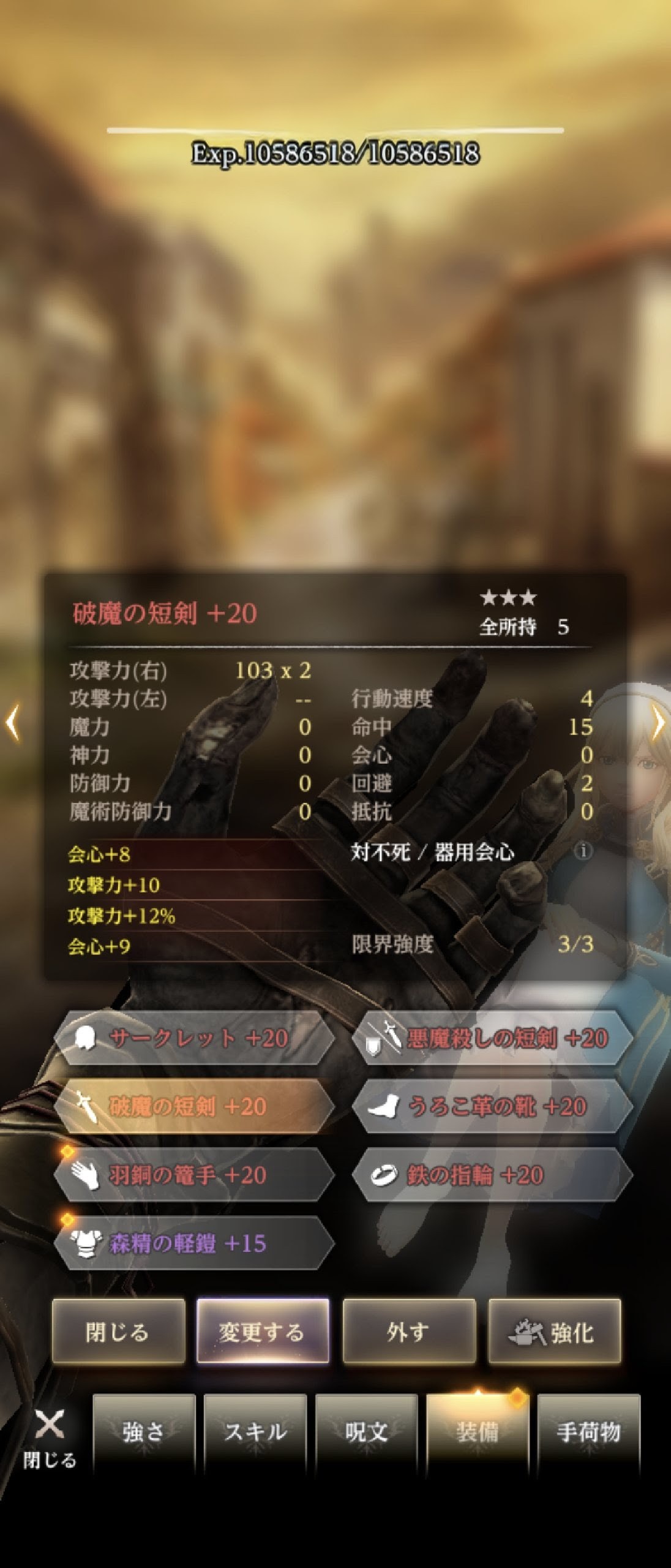 攻撃+9(破魔片手剣)VS命中+5&速度+2&器用会心(破魔短剣)の差でしかないので会心死んでても短剣は然程弱くない