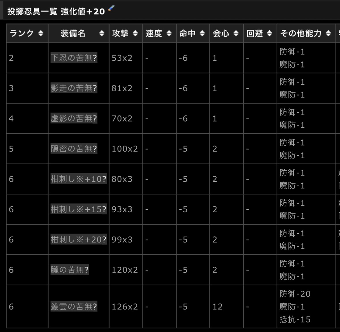 課金靴、素早さ51で会心が7上がってる